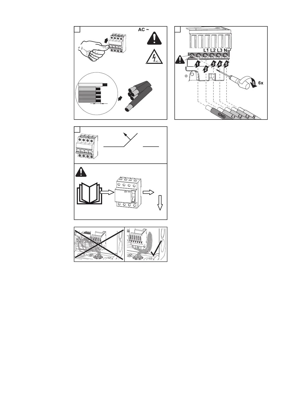 IMPORTANT! Do not lay AC cables over the shaft of the DC main switch or across the DC