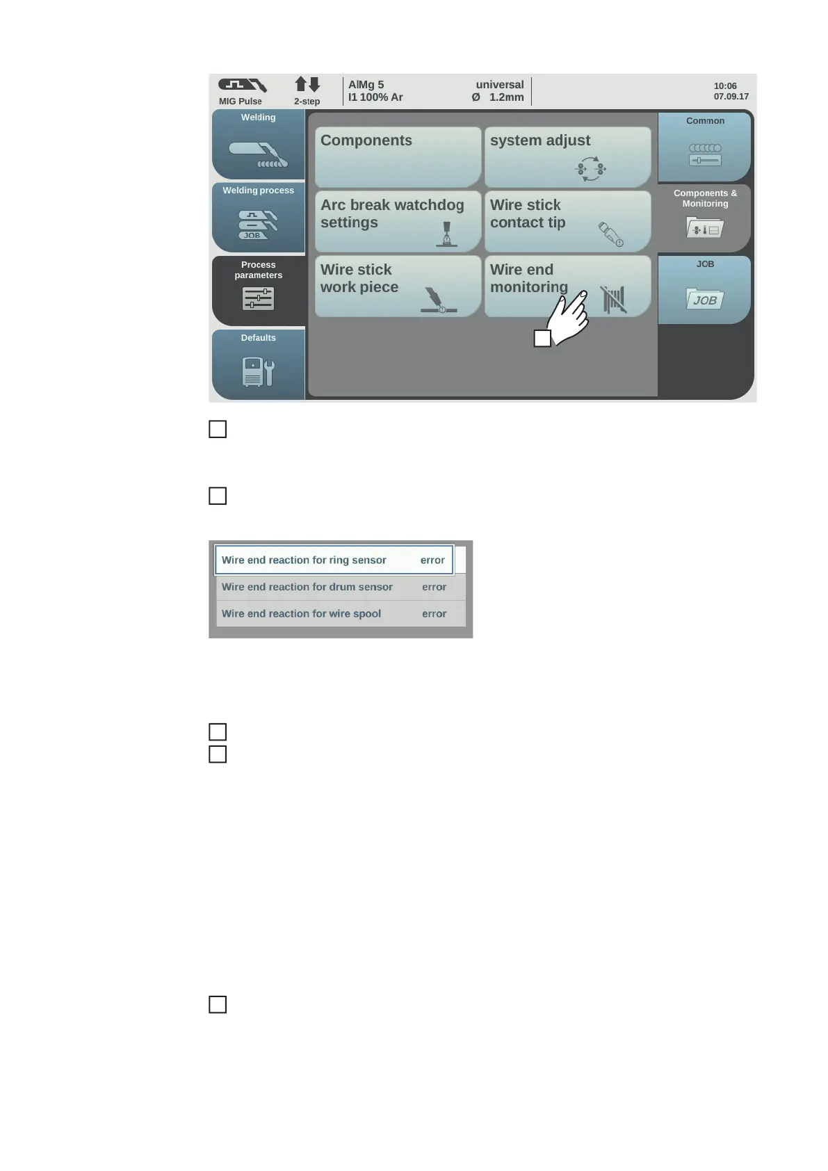 The wire end fault will show on the display after the current welding process has end-