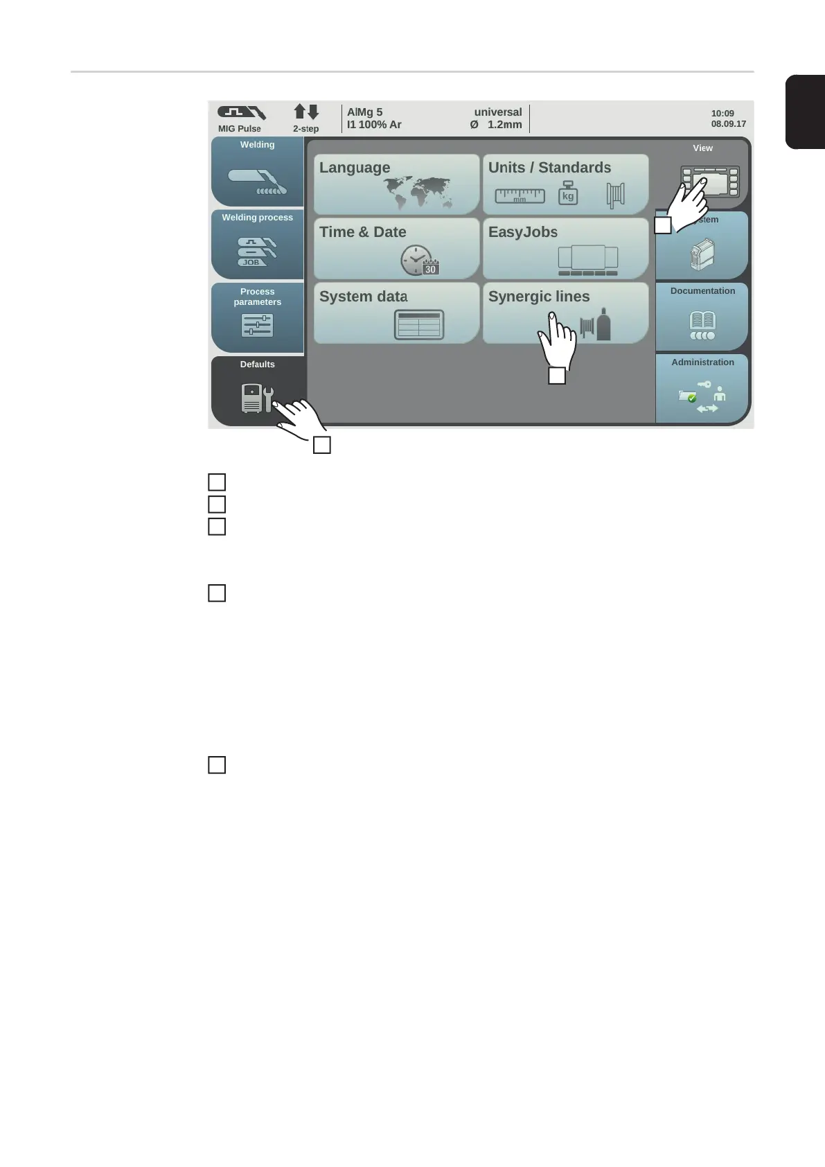 tings, as well as the current characteristics. These can also be selected while setting
