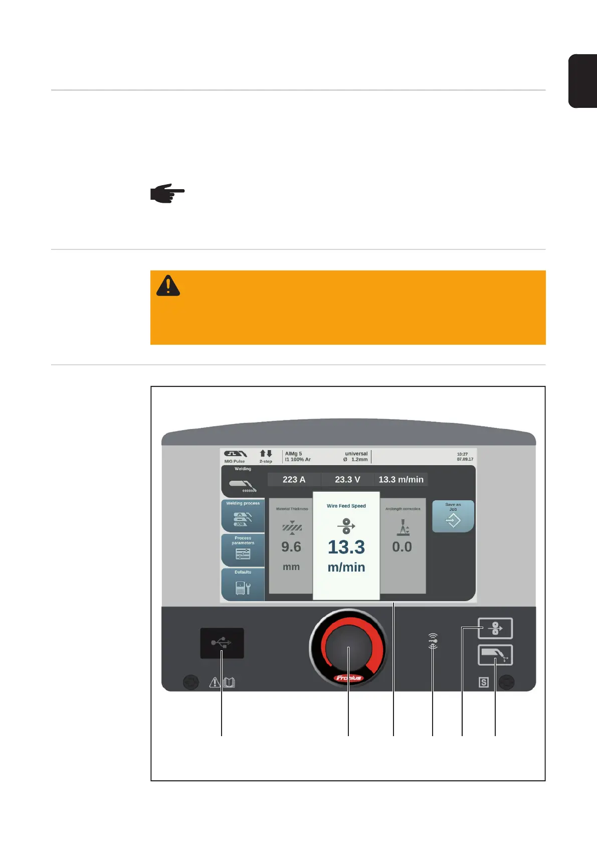 General Welding parameters can be easily changed and selected using the adjusting dial.