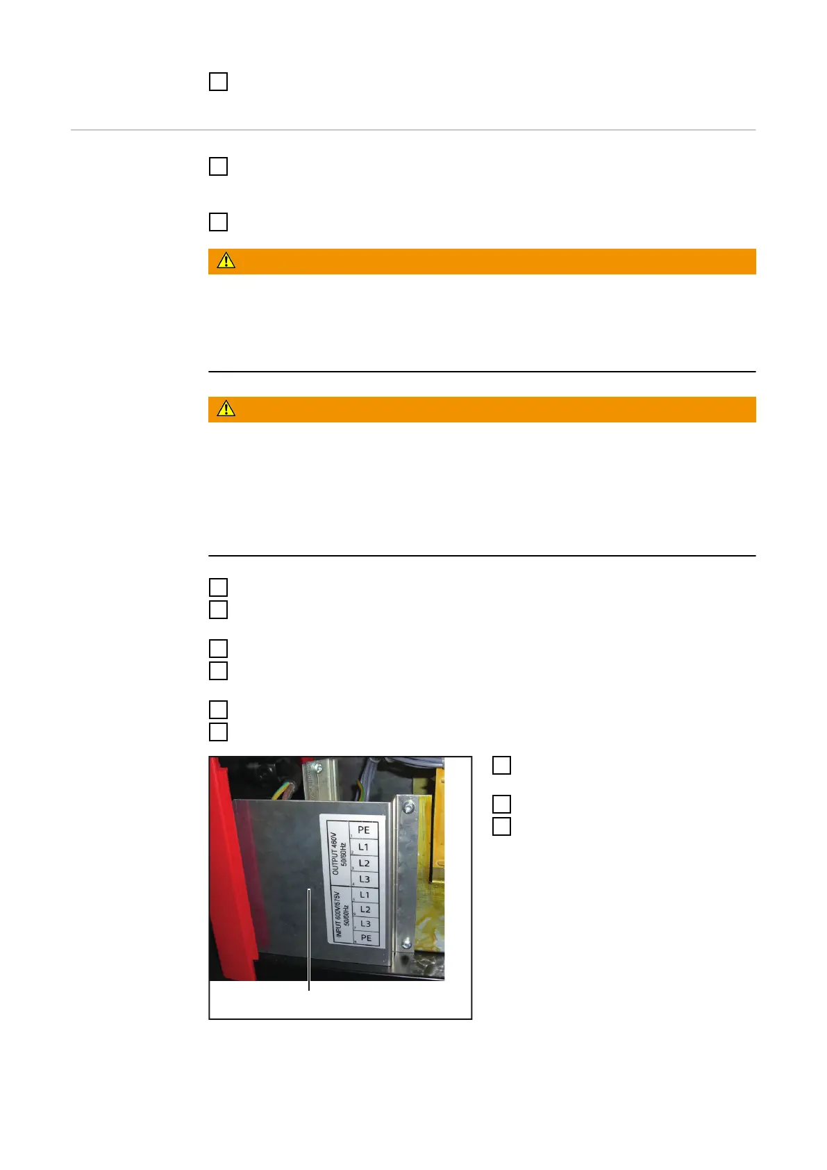 Using a suitable device, test the mains voltage at the clamping strips „INPUT