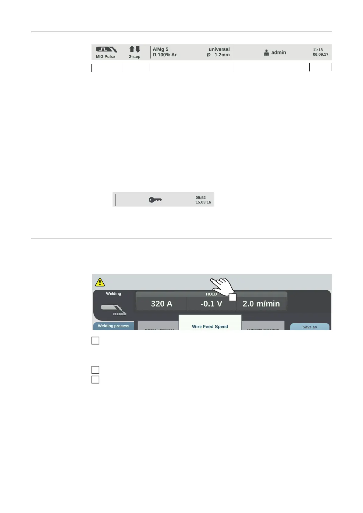 If the characteristic-dependent current limit is reached while MIG/MAG welding, a corre-