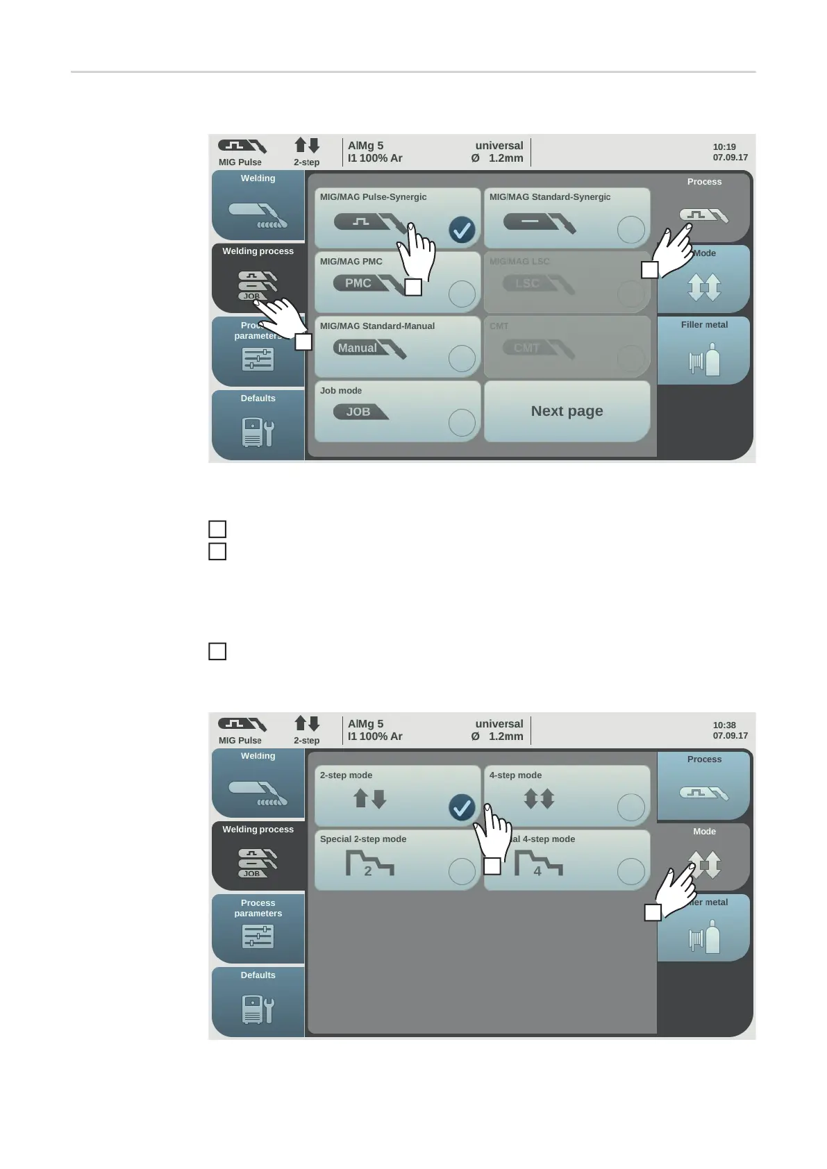 Select the desired welding process