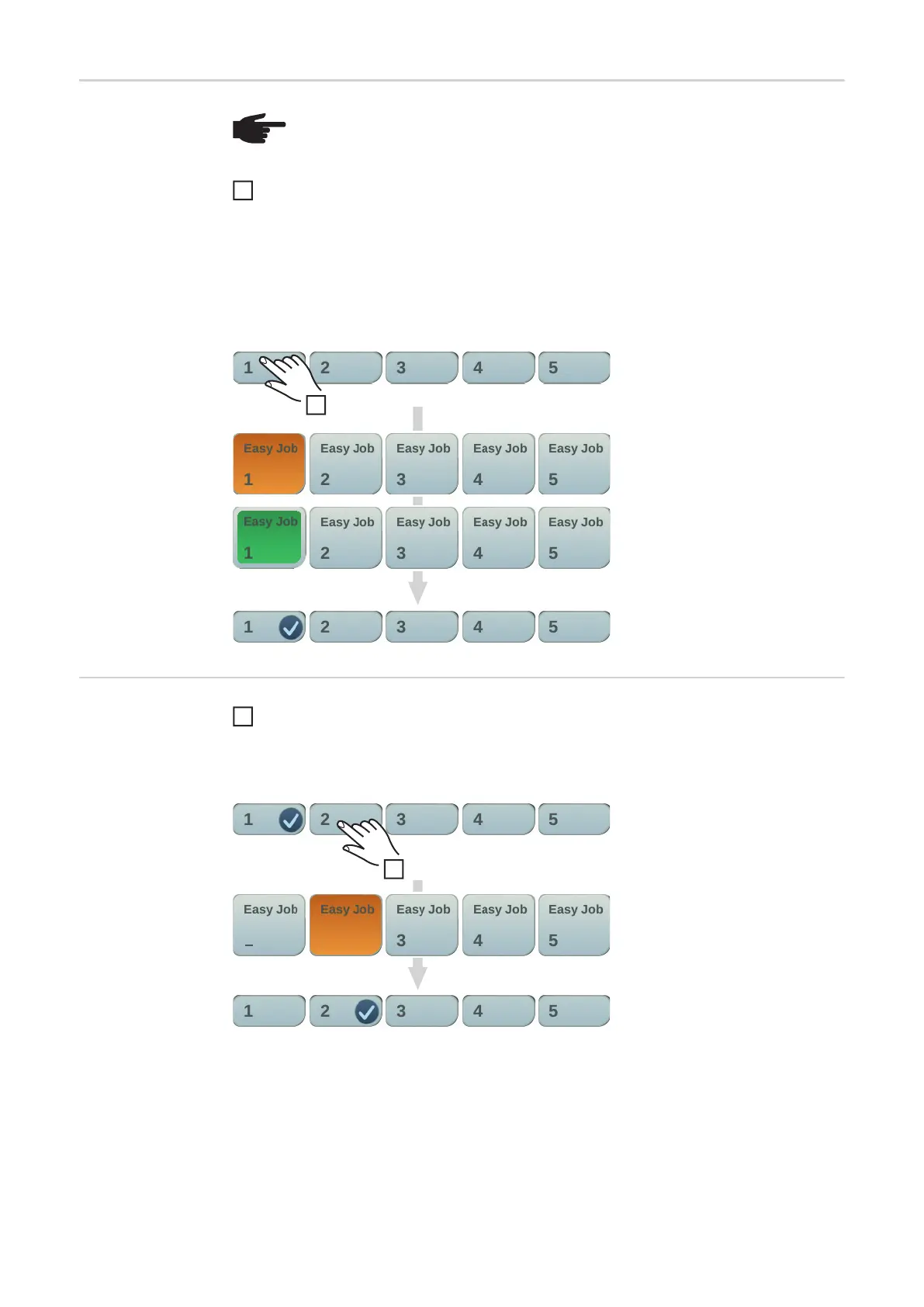 If a tick is not displayed after touching an EasyJob button, this means that there is no op-