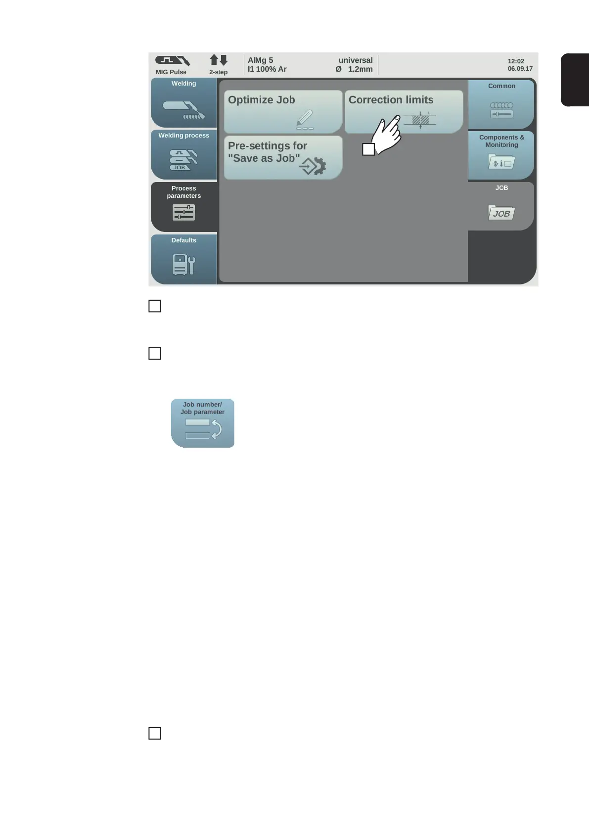 Turn the adjusting dial and select either the job or the job limits to be modified