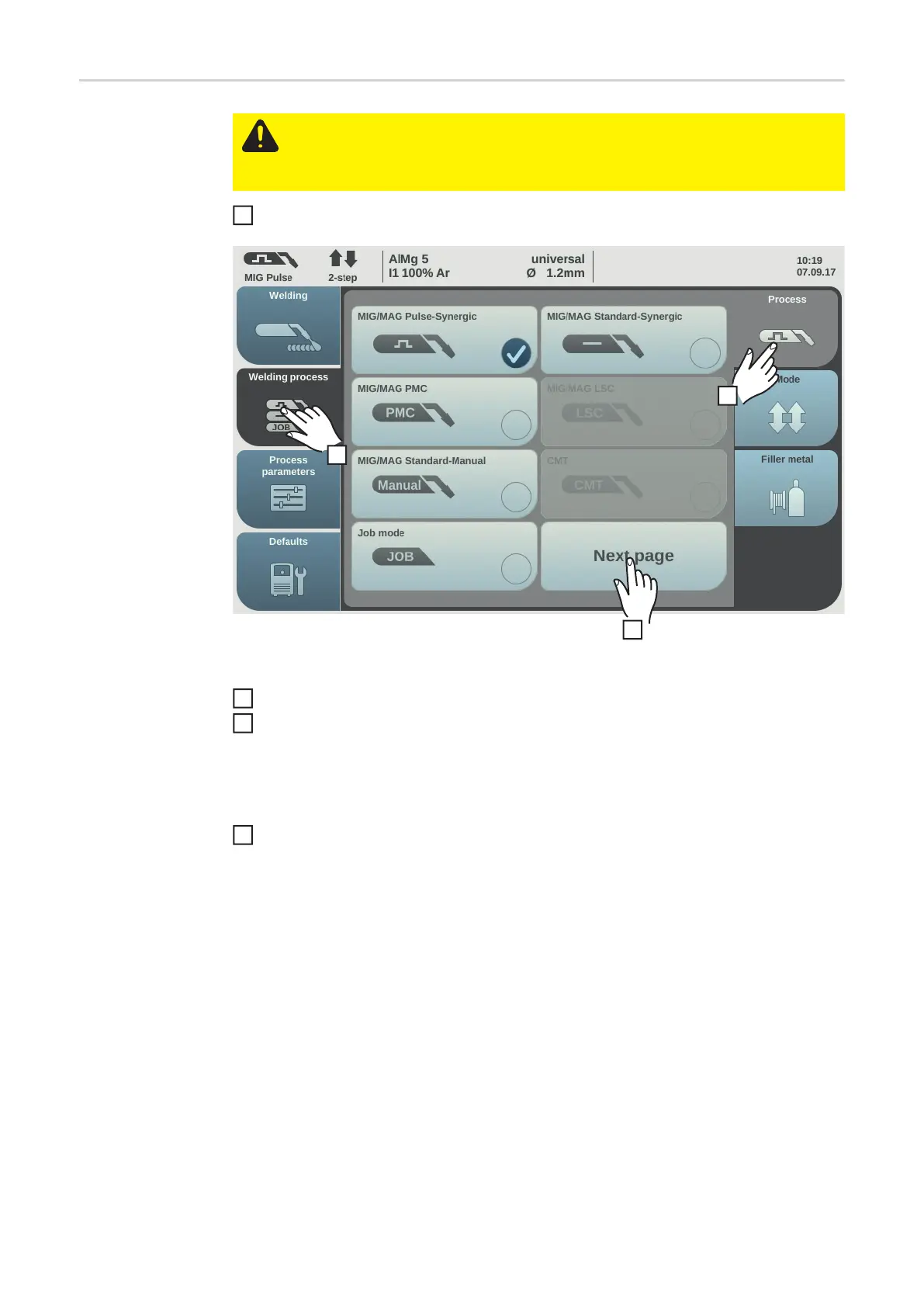 The 2nd page of the welding process overview is displayed.