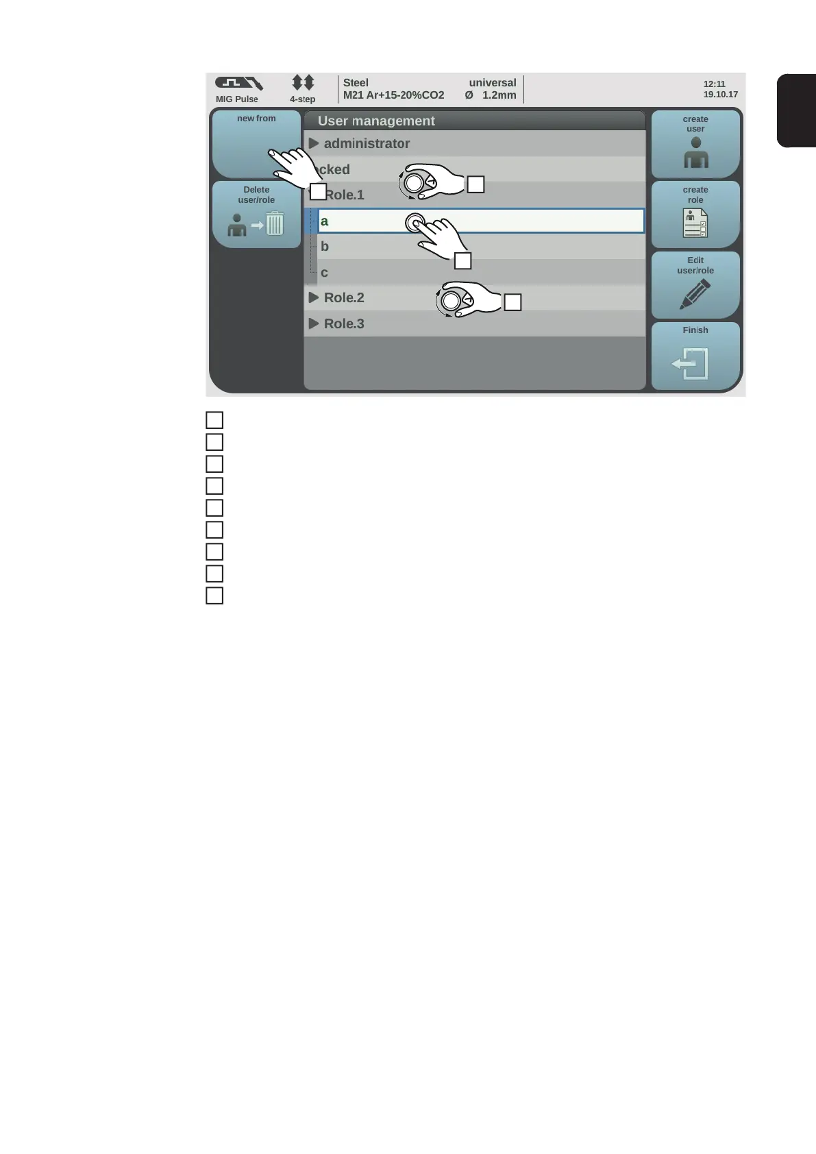Turn the adjusting dial and select the role to which the user to be copied is assigned