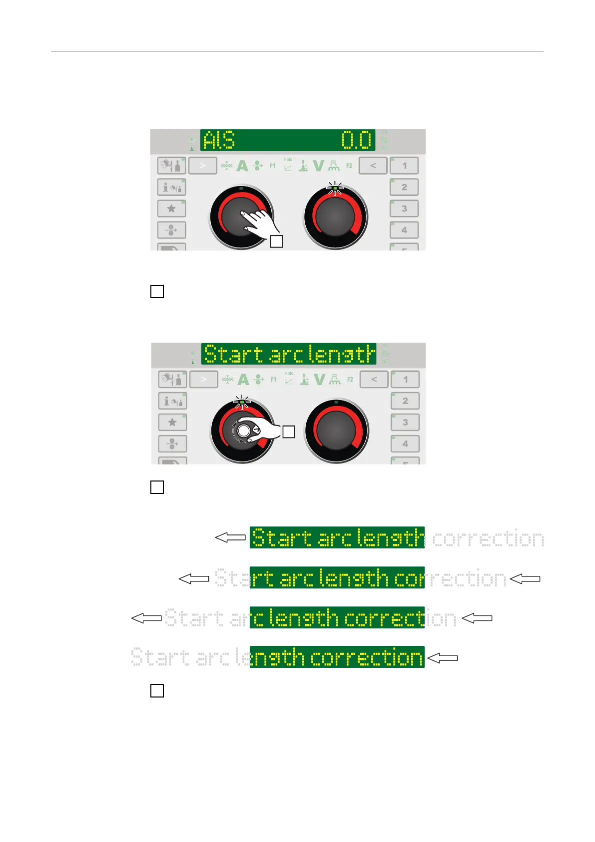 The plain text for the parameter is displayed; the LED on the left adjusting dial