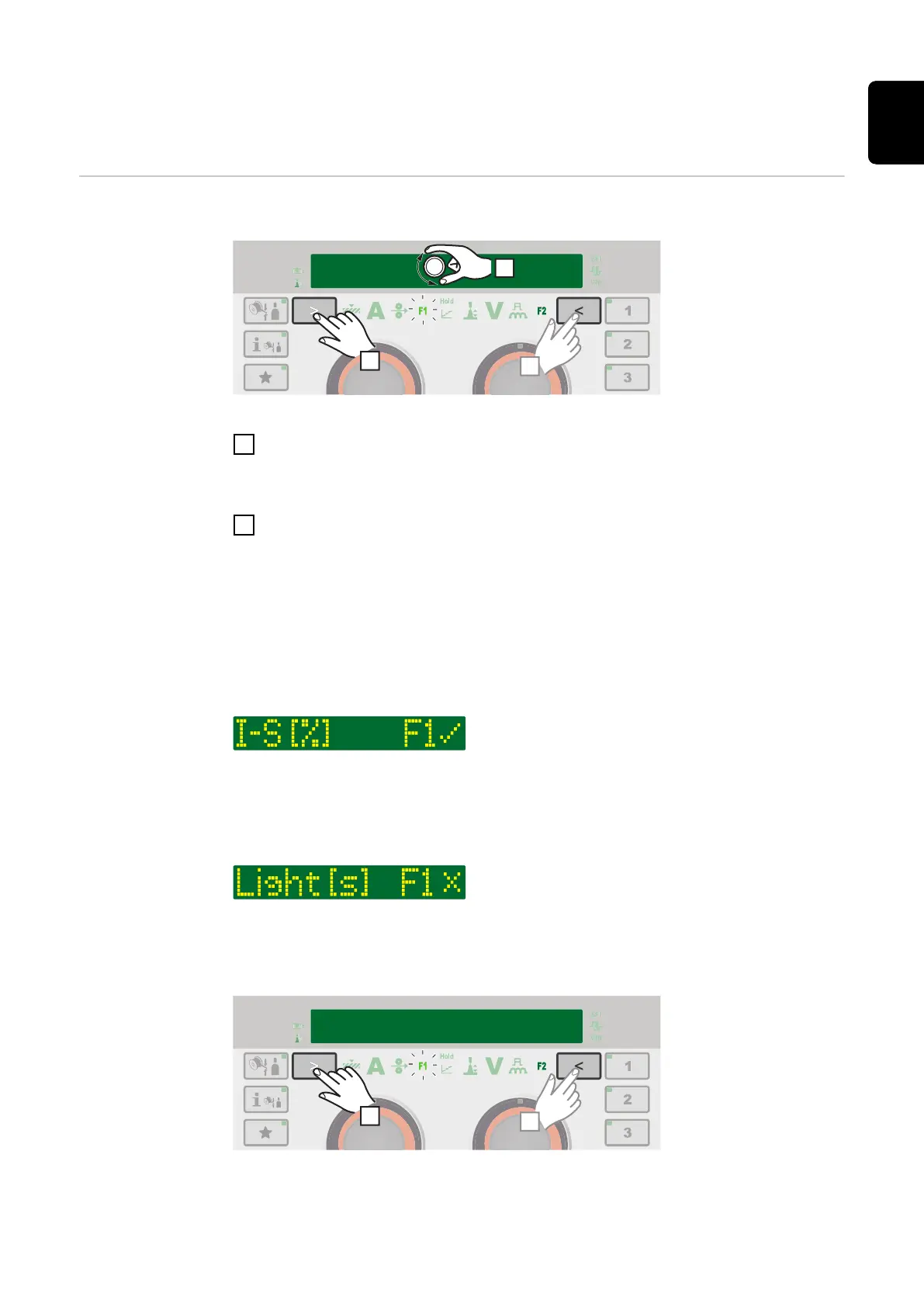 F1/F2 flashes while the parameter selection button is pressed.