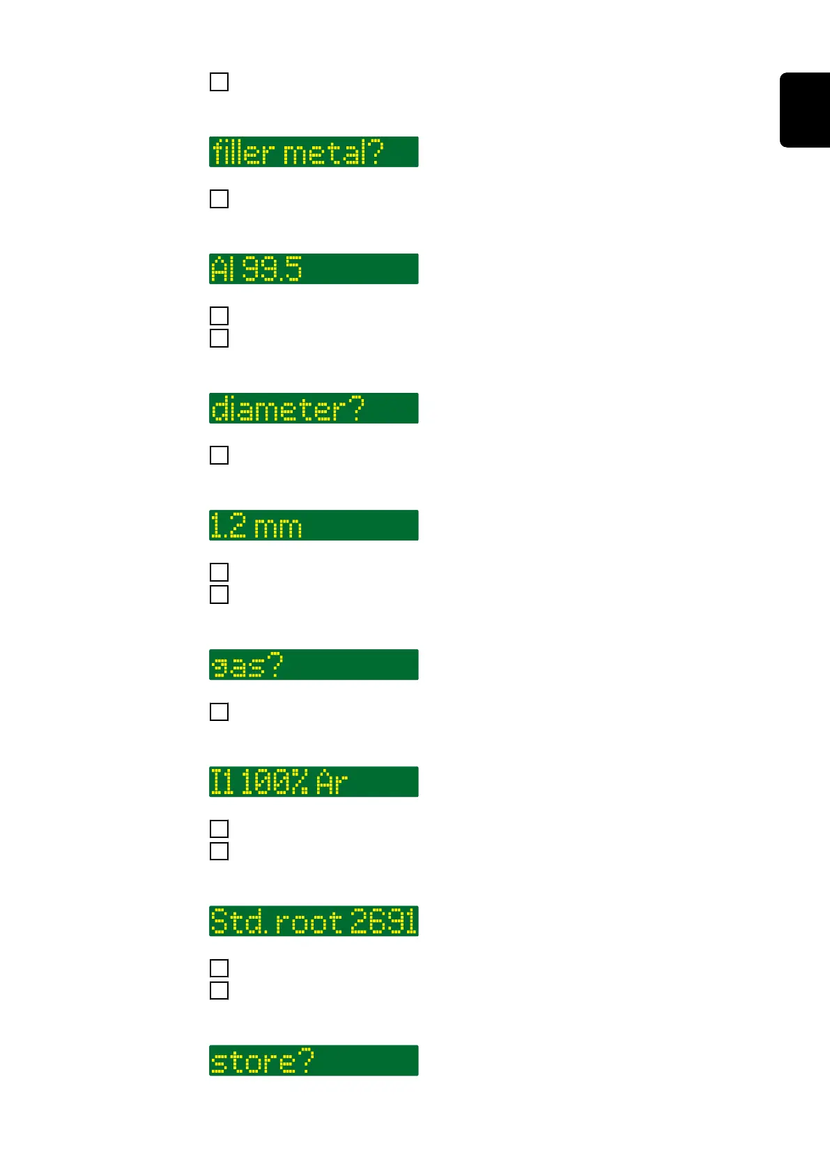 "diameter?" is shown on the display: *