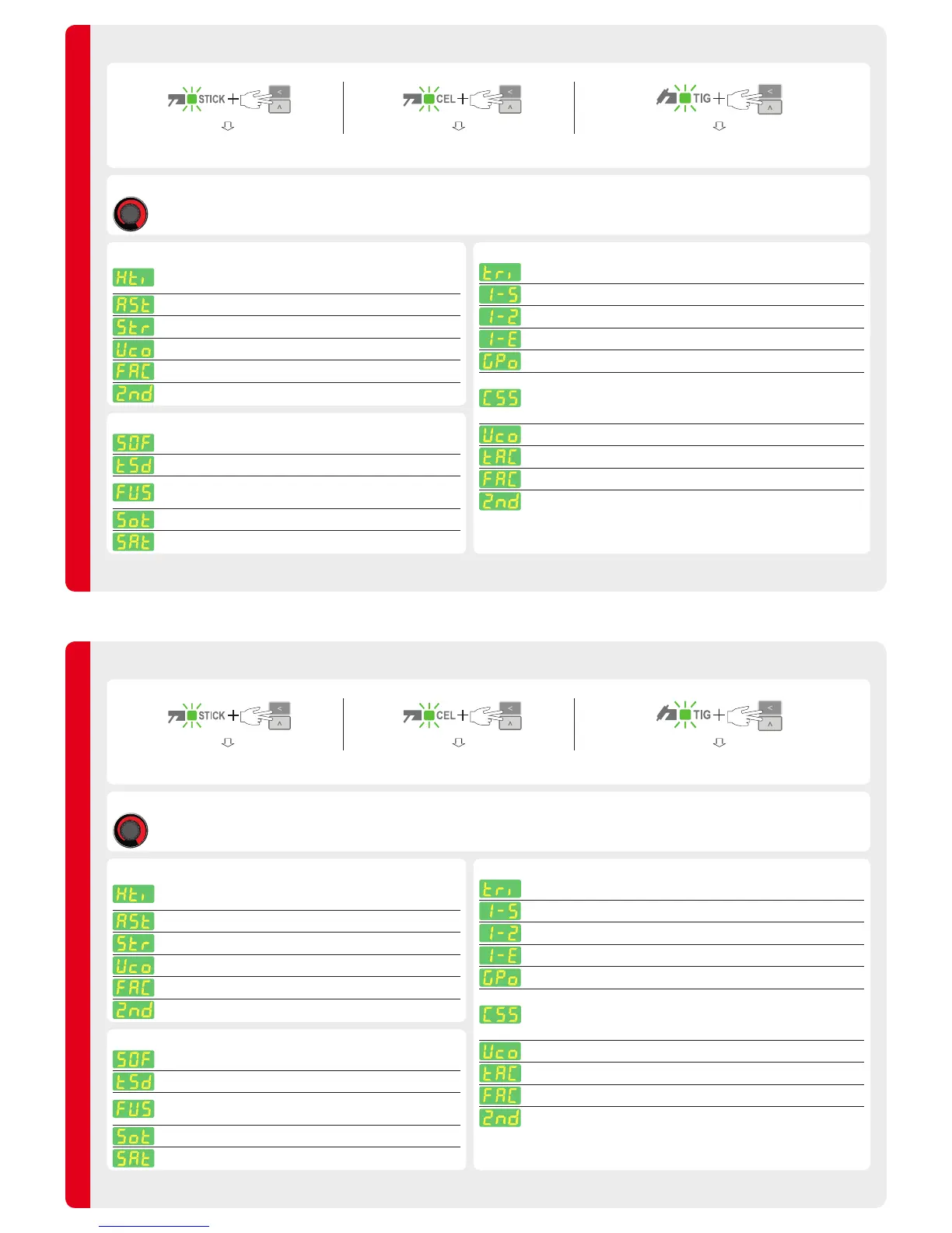 WELDING PARAMETERS IN THE LEVEL 2 SETUP MENU