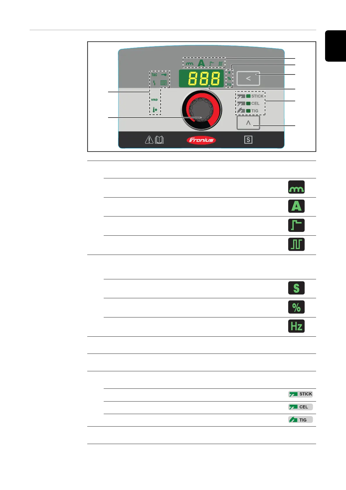 shows which welding process is selected: