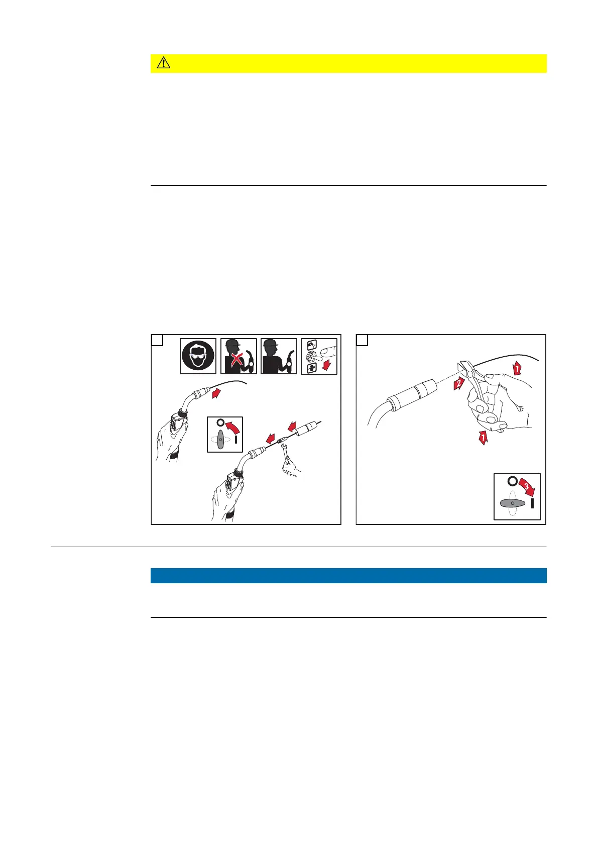 IMPORTANT! If the torch trigger is pressed instead of the "Wire threading"/"Gas-test"