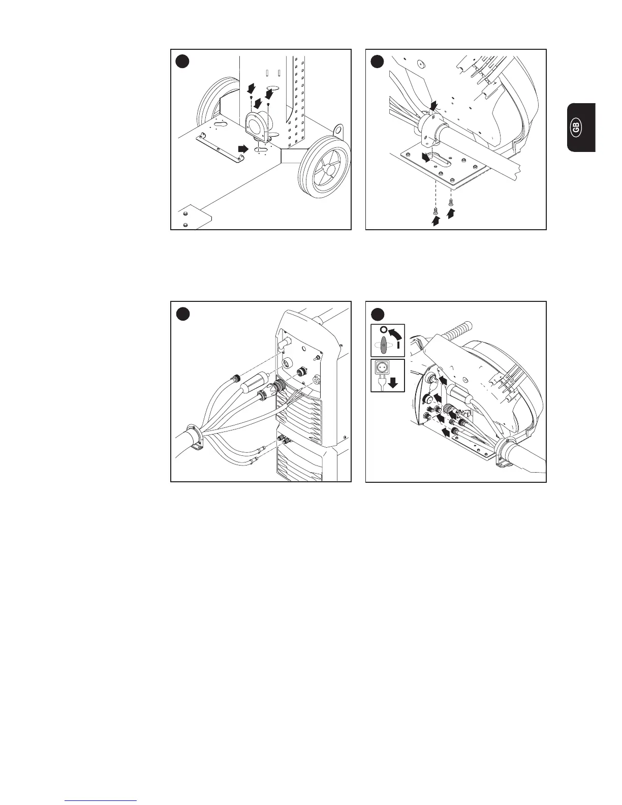 Fronius TransSteel 5000 - Fixing the Strain-Relief Device in Place; Connecting the Interconnecting Hosepack