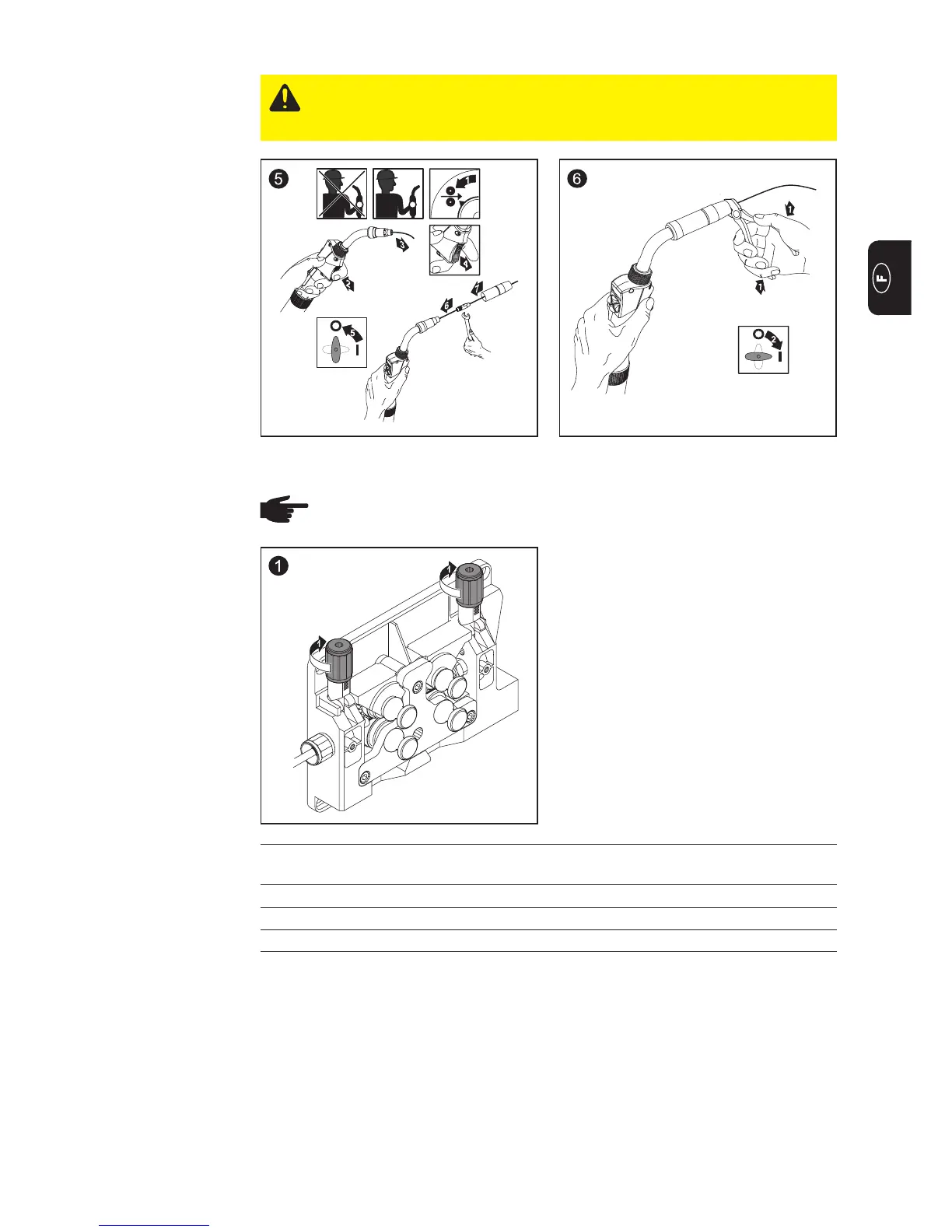 Attention ! Risque de blessure en cas de sortie du fil de soudage. Lorsque