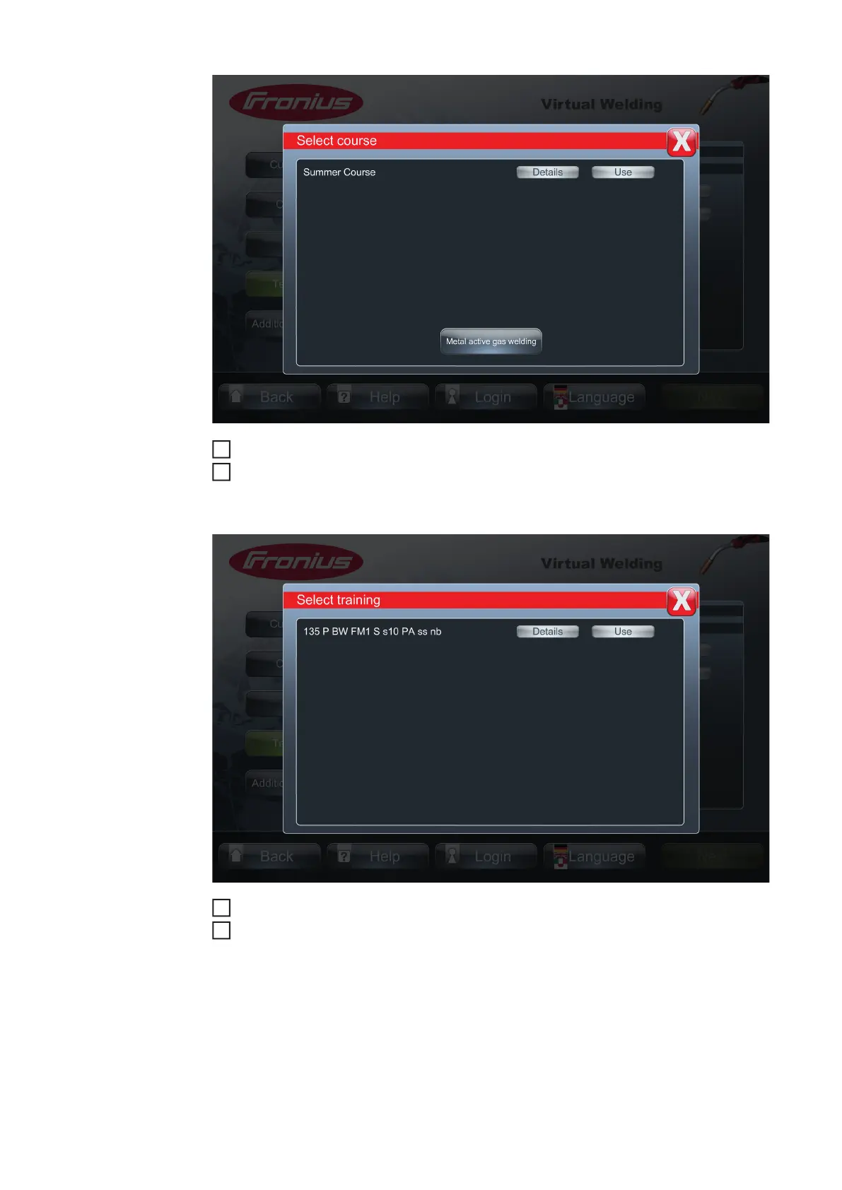 Touch "Use" to select the training course to be assigned to the Virtual Welding system