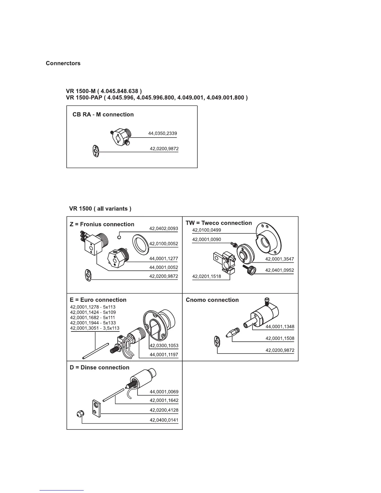 Fronius VR 1500 - Connectors and Interfaces; VR 1500 Connector Types and Applications