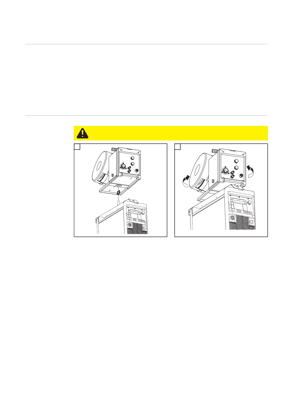 CAUTION! Danger from falling wire-feed unit. Check that the wirefeeder is se-