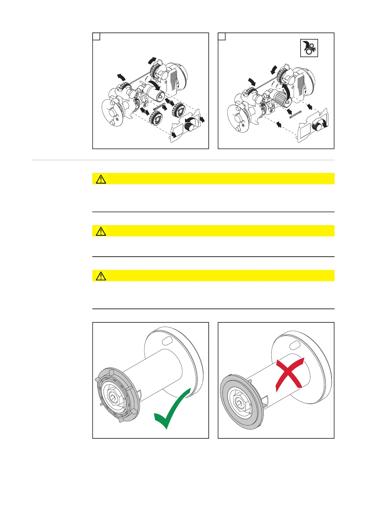 ► While inserting the wirespool, hold the end of the wire electrode firmly to avoid injuries