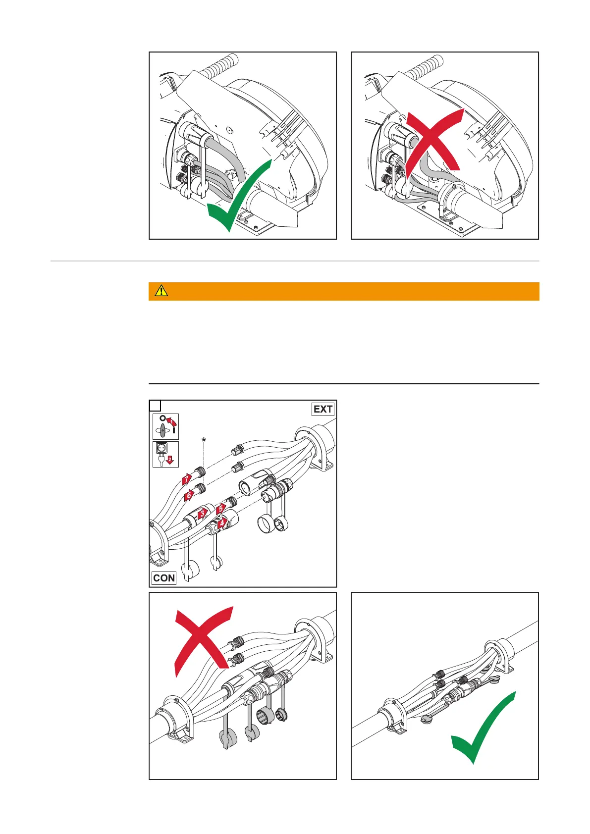 All cables, leads and hosepacks must always be securely connected, undamaged