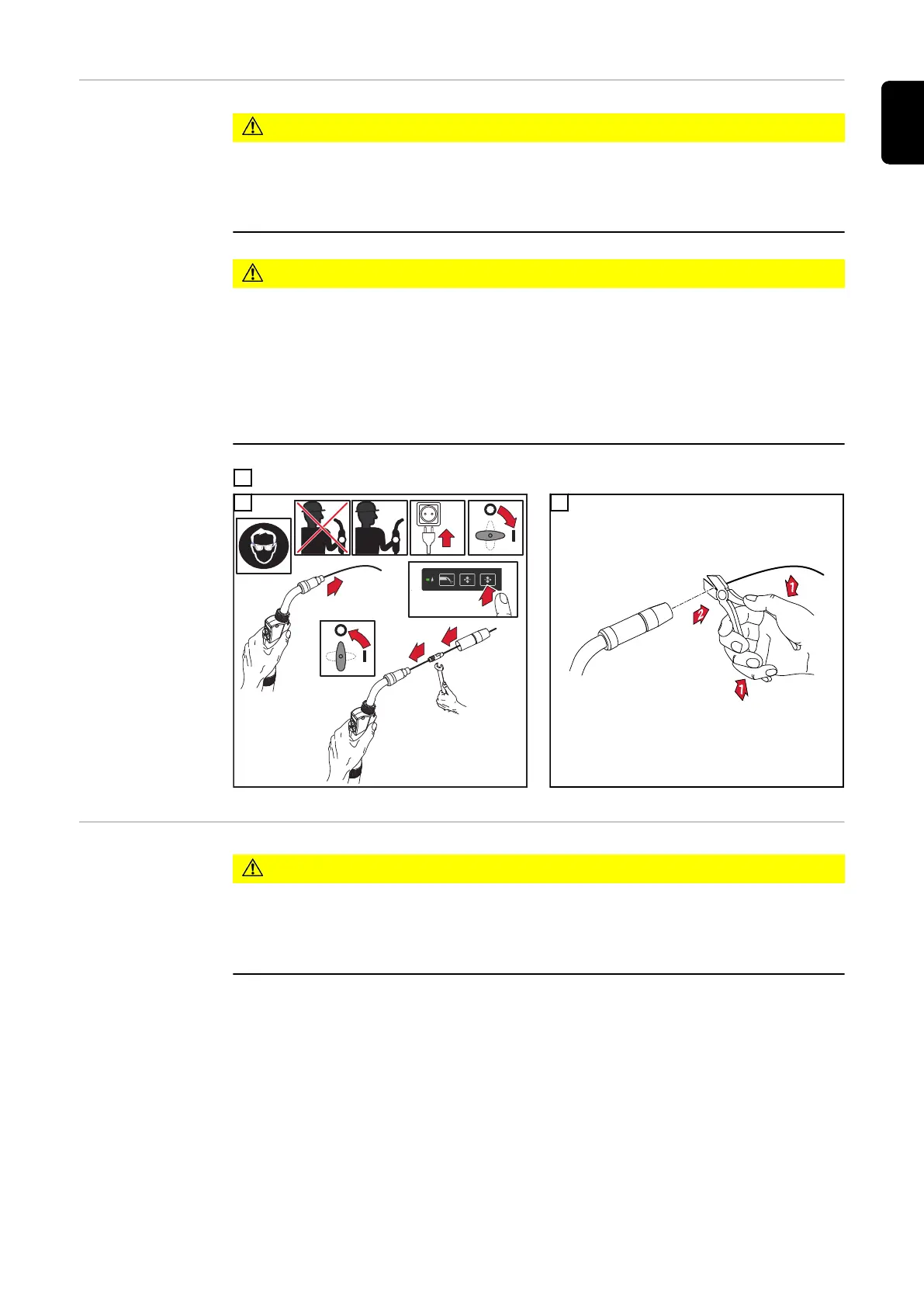 Danger from welding current and accidental ignition of an arc.