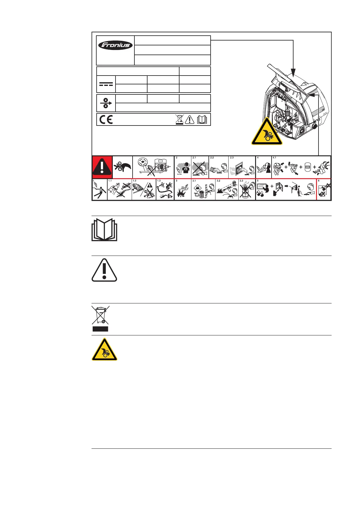 Do not reach into the rotating cogs of the wire drive or into rotating drive