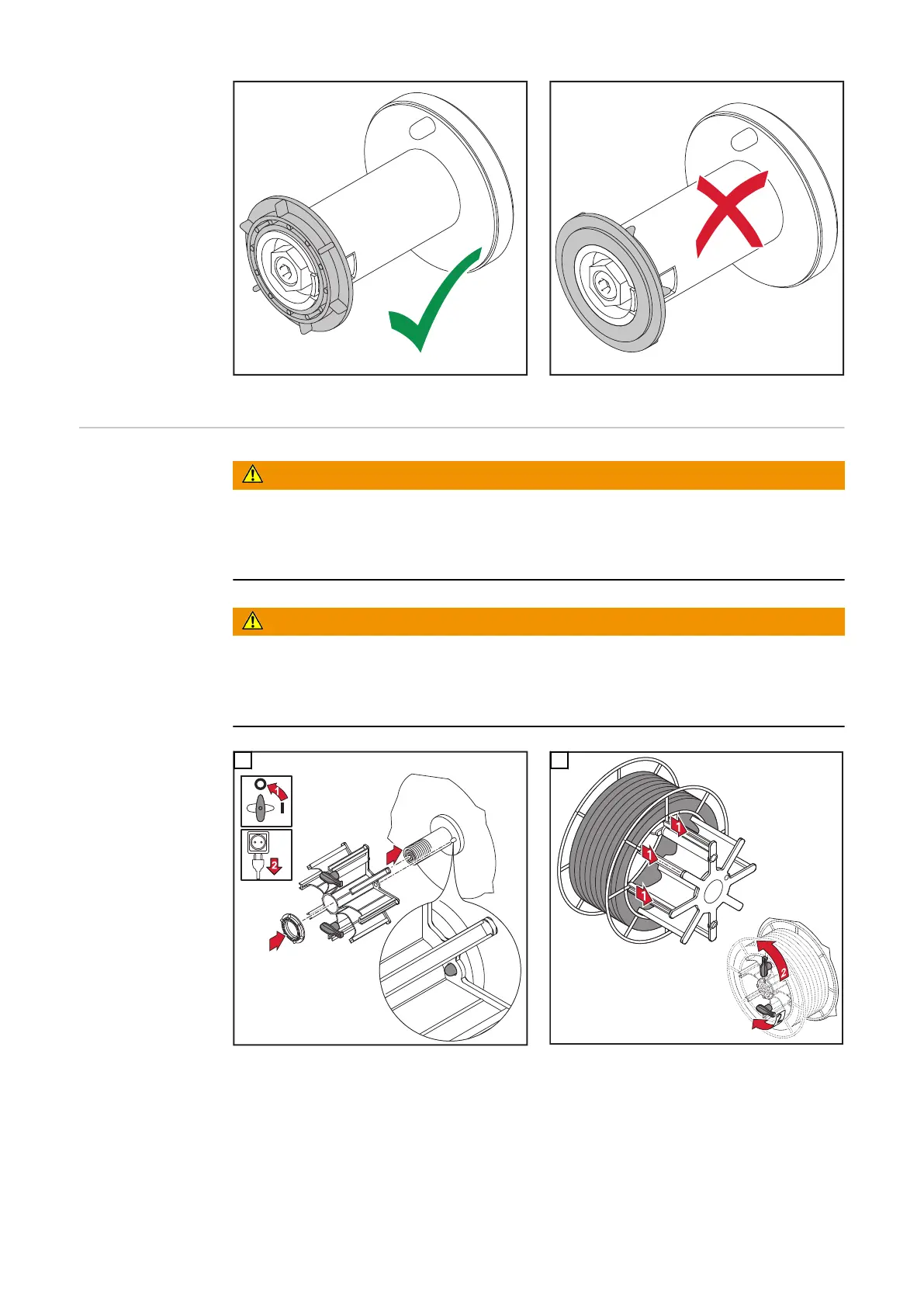 Danger from falling basket-type spool due to missing basket-type spool adapter.