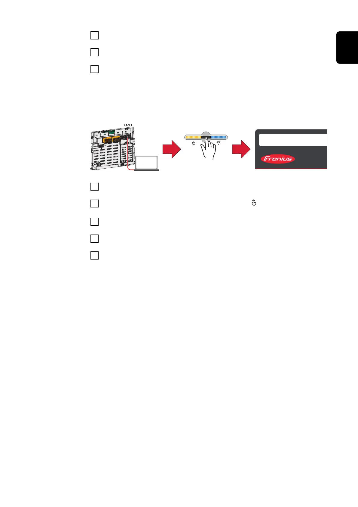 Establish a connection to the inverter (LAN1) with a network cable (CAT5