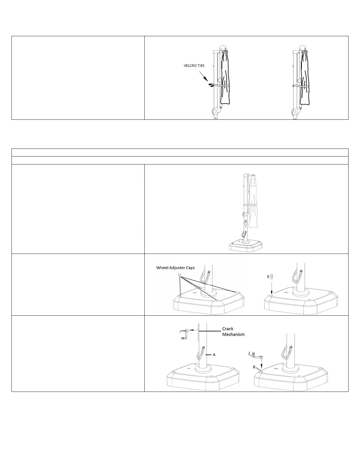 To make it easier to move your umbrella, the BASE ASSEMBLY comes equipped with RETRACTABLE WHEELS.