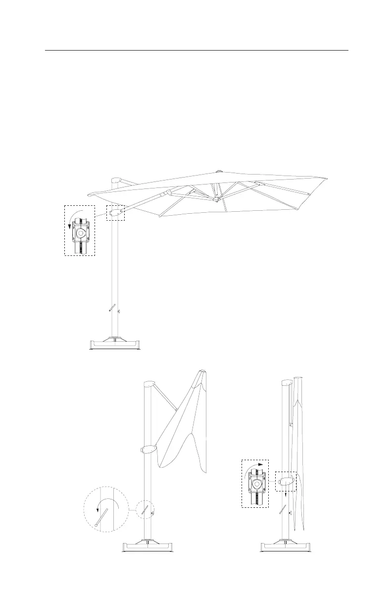 IMPORTANT: When closing the umbrella, the canopy must be in a horizontal position, or
