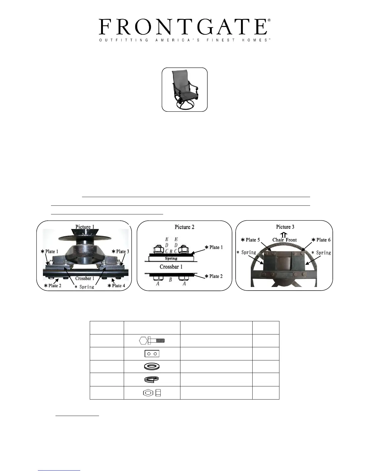 4 lock washers (D), and 4 nuts (E) as shown in Picture 2. Complete final assembly is shown in Picture 1. Correct