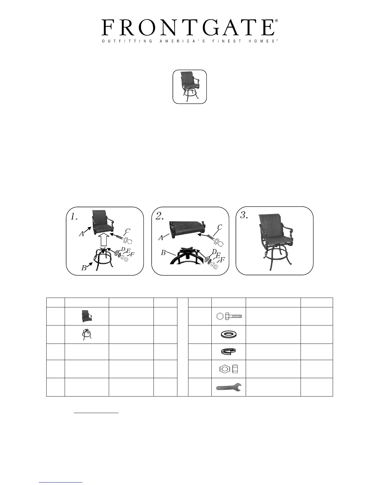 Frontgate: Please contact one of our Product Specialists for assembly assistance or questions at 1-800-537-8484
