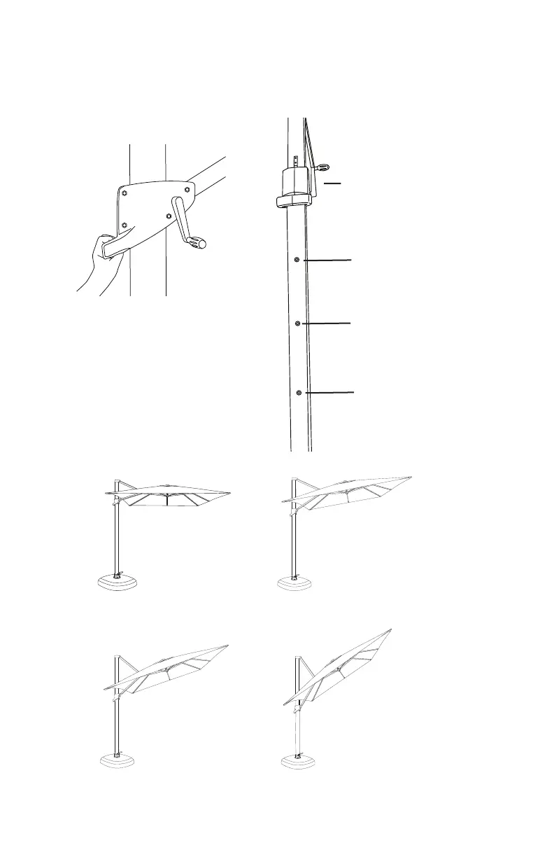 opening, do not force the crank. Gently spread umbrella ribs with hands, then continue
