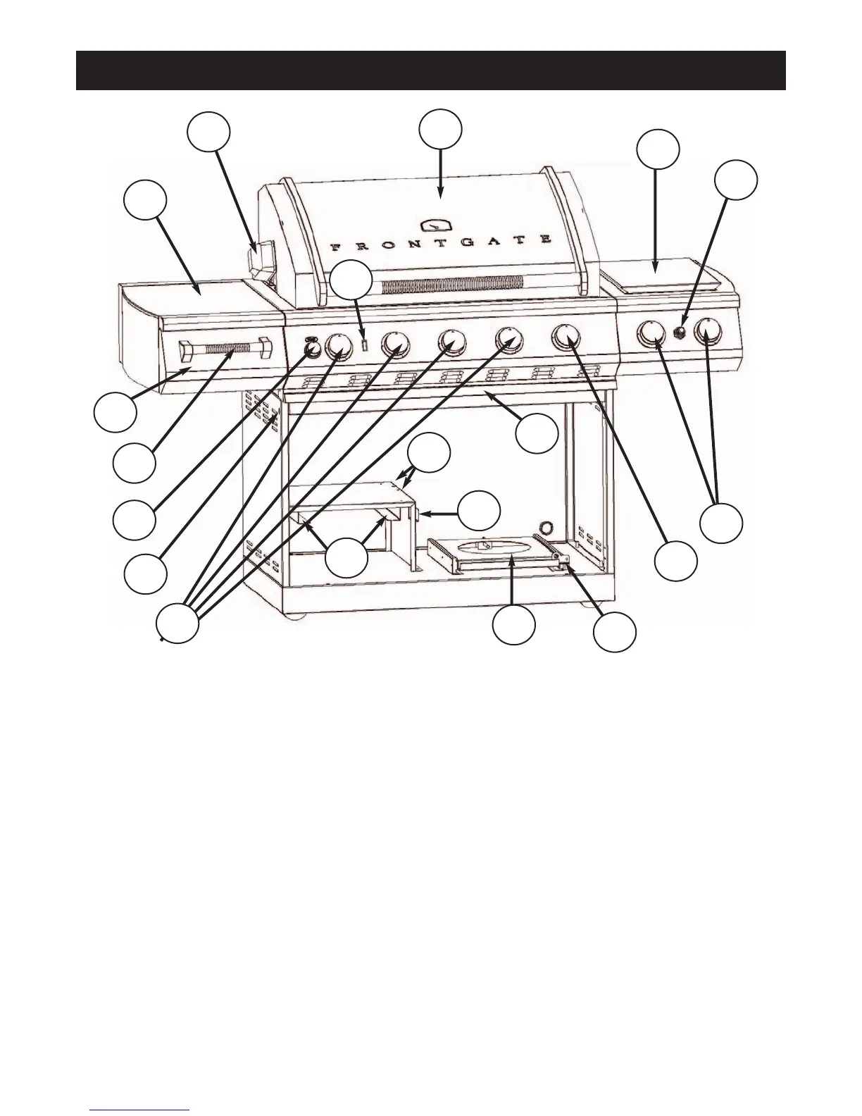 9. Control Knobs: Side Burner 18. LP Tank Tray Lock