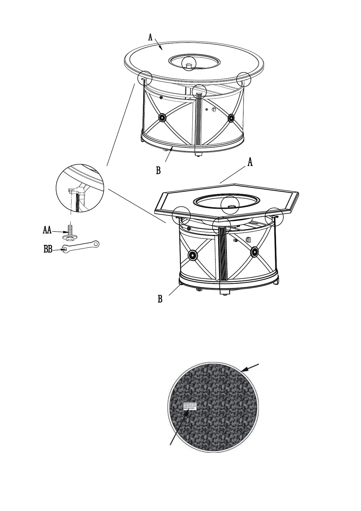 3. Pour the fire ice or lava rock (sold seperately) into the burner pan completely covering