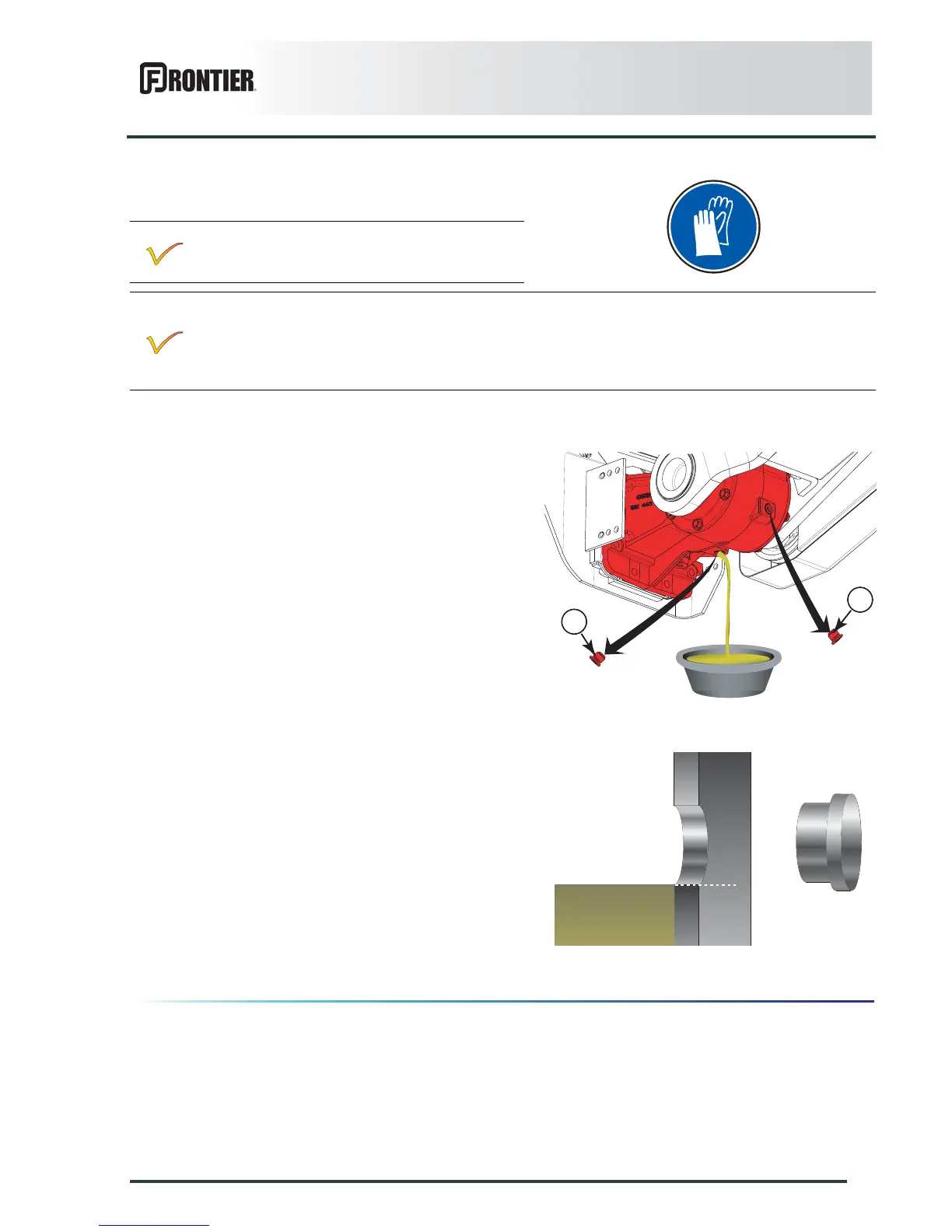 The lateral gearbox is lubricated with 0.25 L (0.5 US pints) of extreme-pressure oil for mechanical