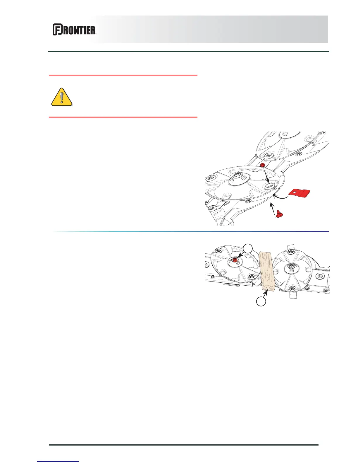 Place a wooden wegde (2) between two disks to stop