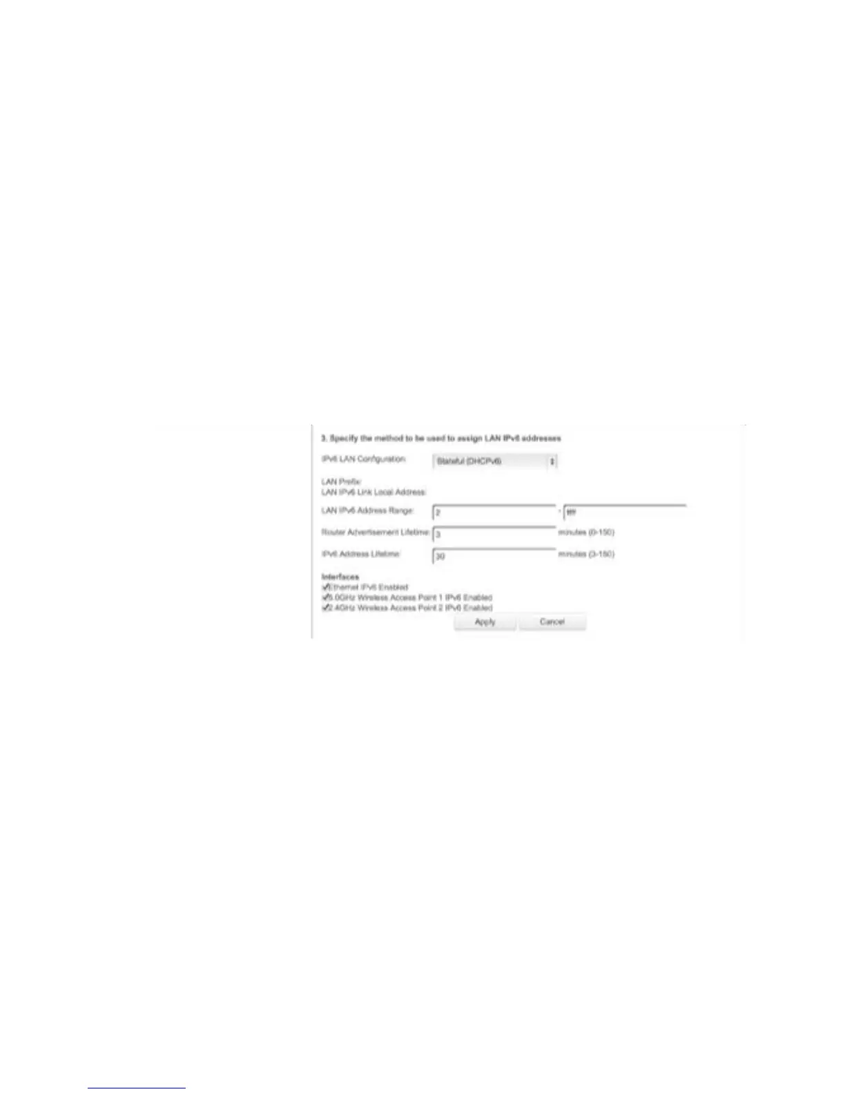 IPv6 LAN Configuration (select Stateless from the drop- down list) as