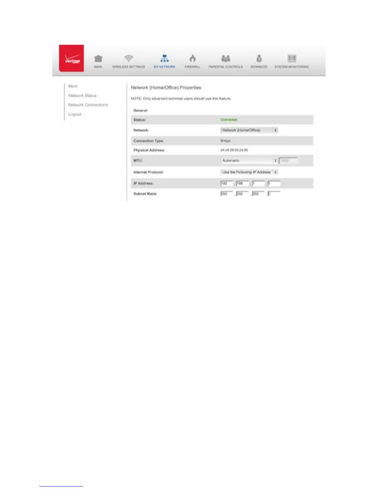 • Physical Address - displays the physical address of the network card
