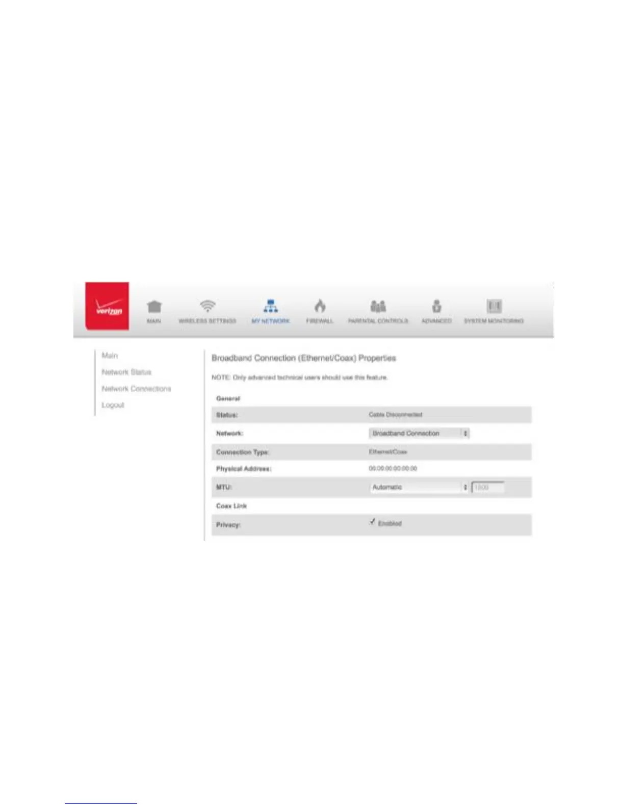 1. In the Broadband Connection (Ethernet/Coax) Properties page, click