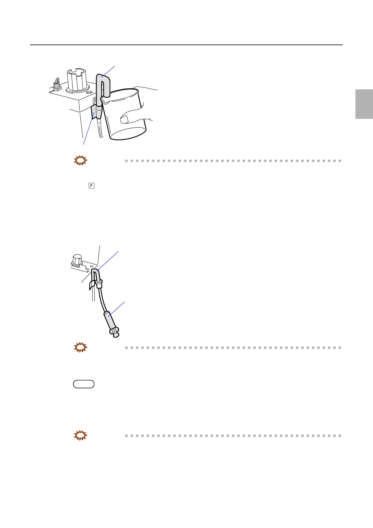 • If the injection syringe slips out of the air exhaust tool, replenishment solution or water may splash.