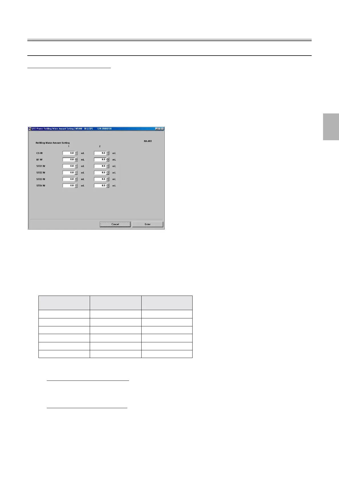 ! Refilling Water Amount Setting (Initial value: See the table below.) (Input range: 0.0 to 999.9 ml)