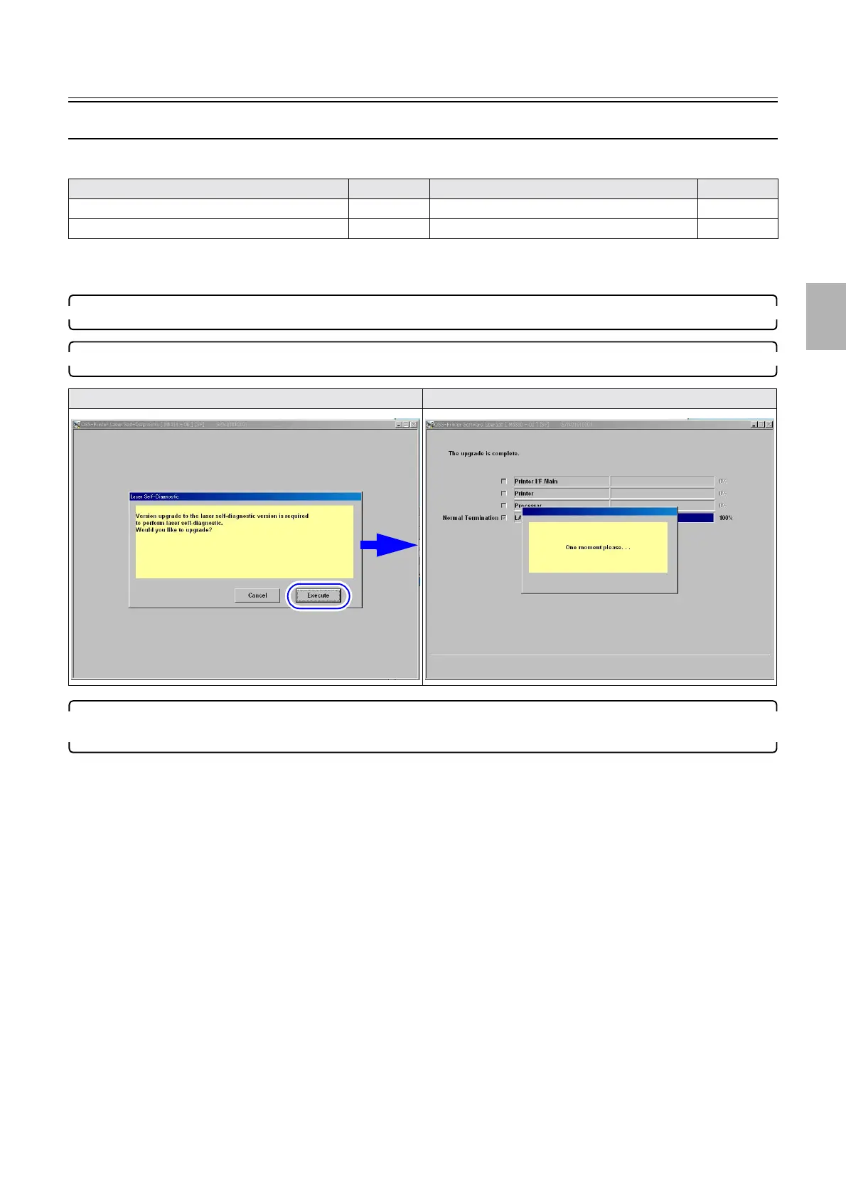 2. Clicking execute performs Upgrade then Laser Self-Diagnostic is shown.