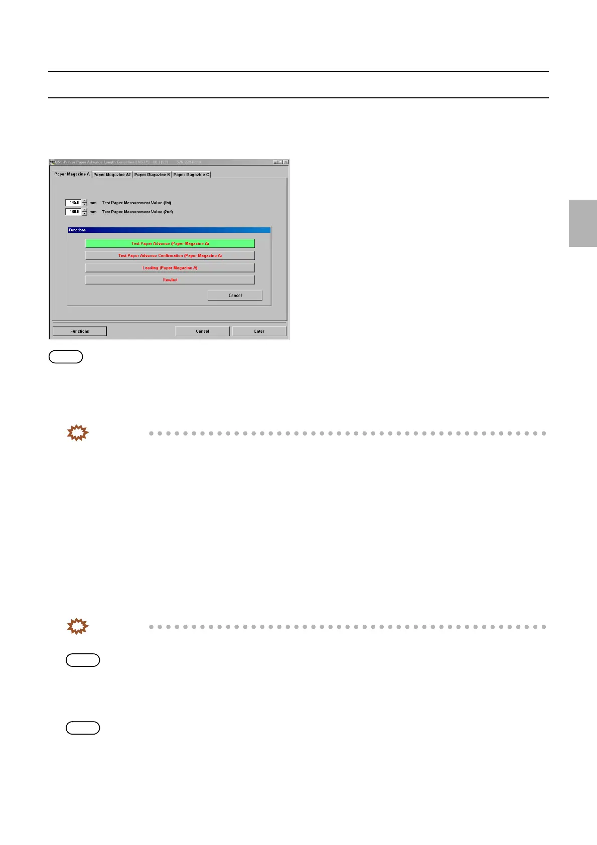 It is necessary to carry out paper advance length correction for each paper magazine A, A2, B, and C.