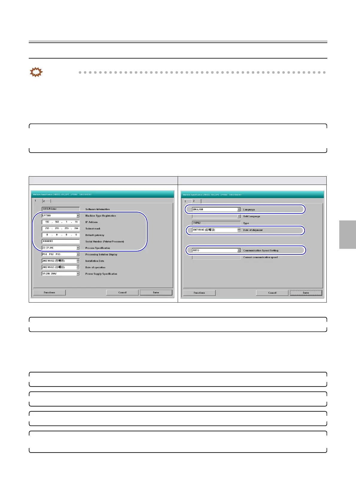 mask, Default gateway, Serial Number (Printer/Processor), Date of shipment and
