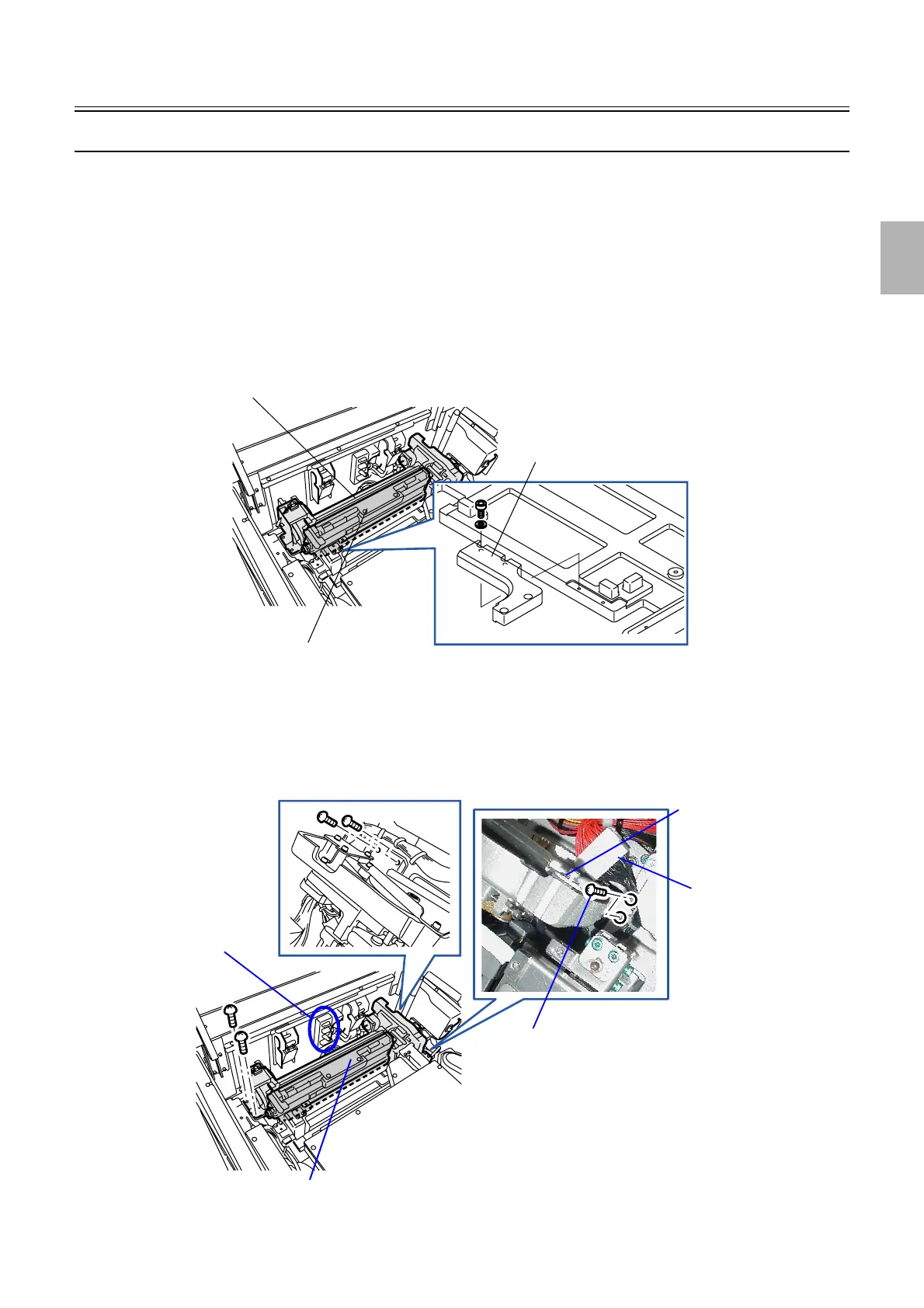 5. Remove the reinforcement angle bracket from the exposure advance unit. (four screws)