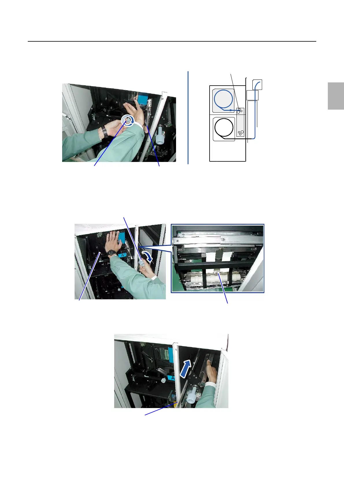 7. Cut the paper between paper magazine A2 and paper supply unit A2 using the manual cutter.