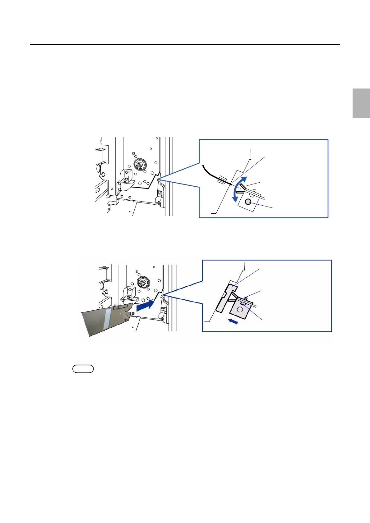 (7) Slowly move the paper guide inlet plate within 1.5 mm while visually confirming the plate, then fix it with the
