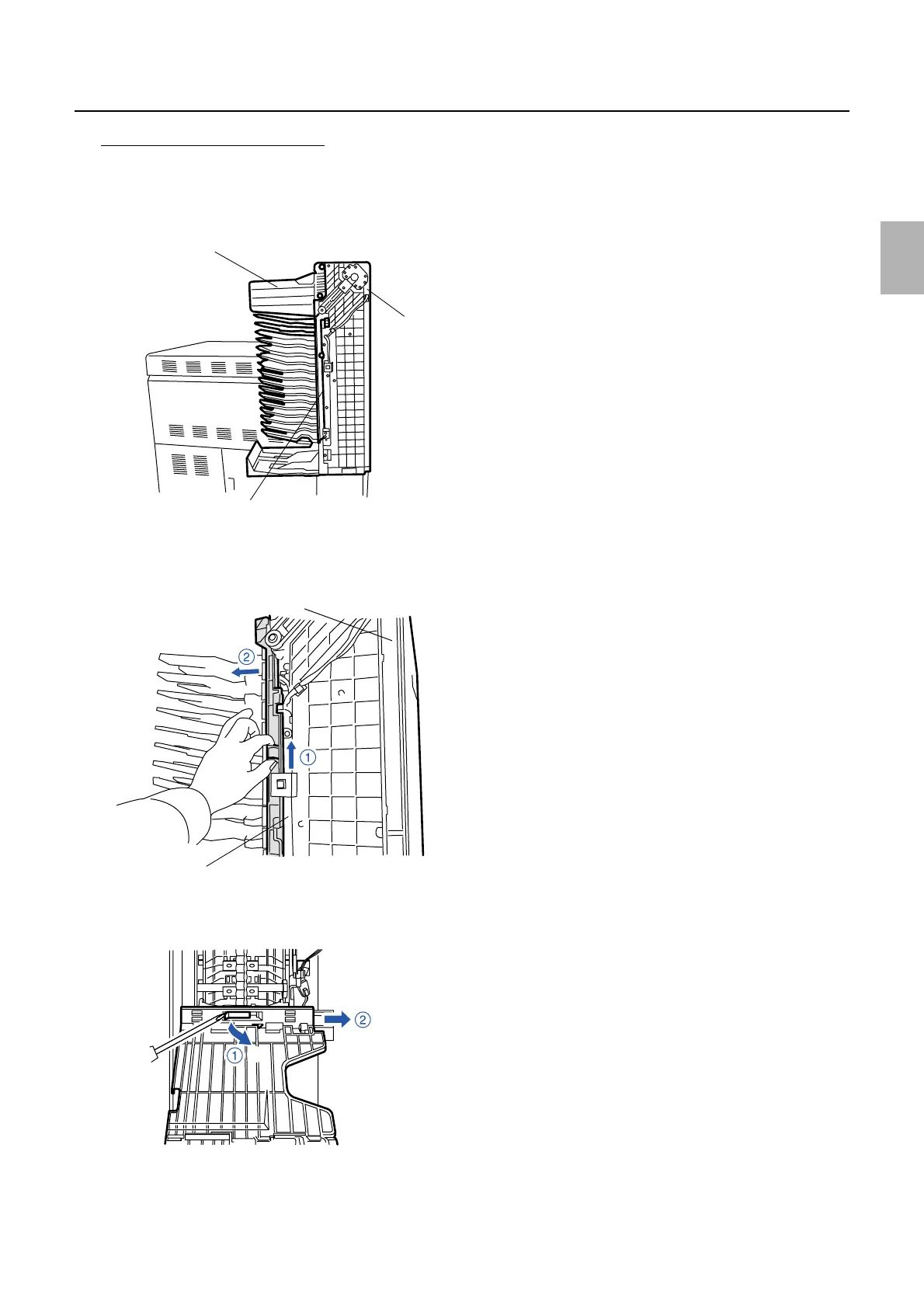 2. Remove paper guide (1). (two screws)