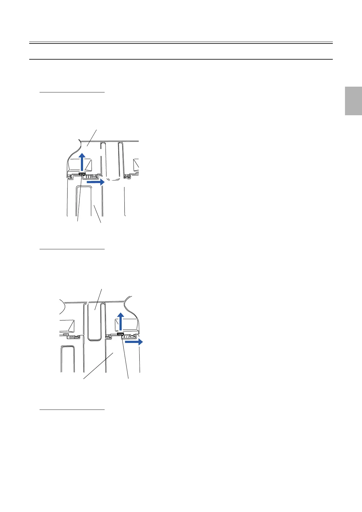 2. Push the pawl of the paper tray (3) in the direction indicated by arrow A, then remove the paper tray (1)
